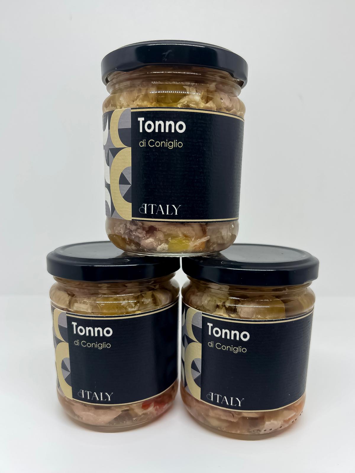 Rabbit tuna is a typical starter in the Piedmontese tradition. Its particular name indicates how the meat pieces are treated and preserved in extra virgin olive oil as it is usually done with tuna.